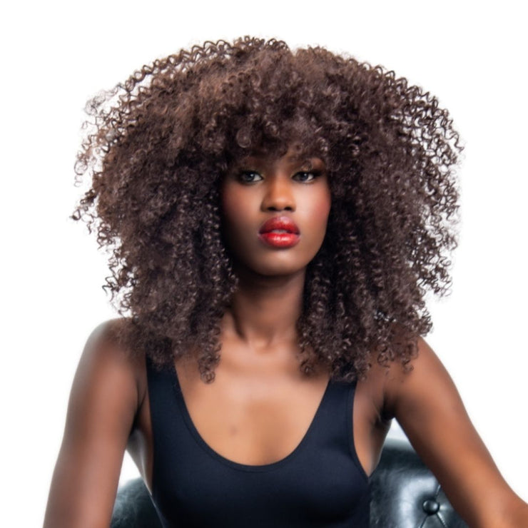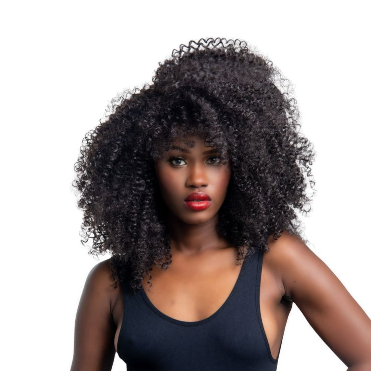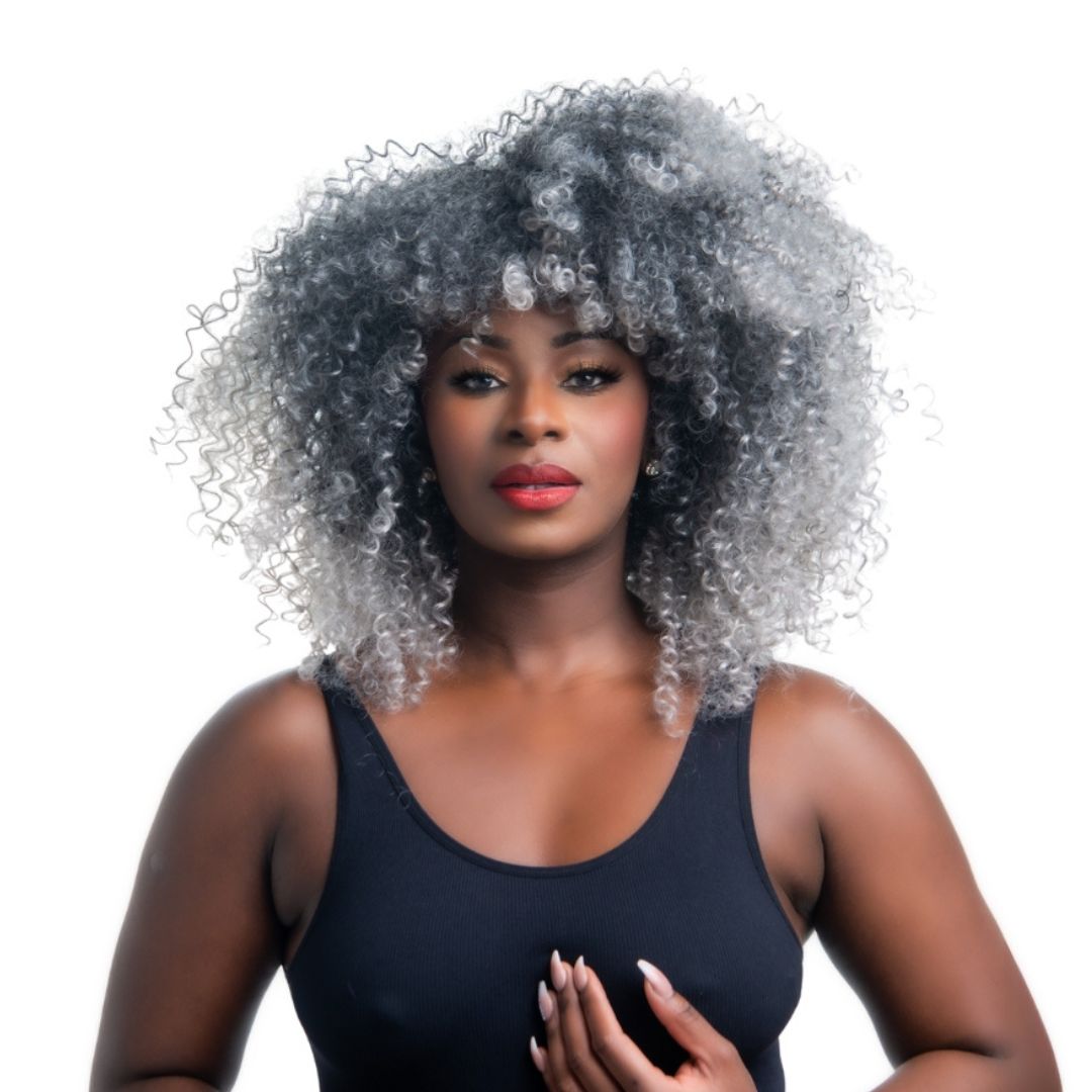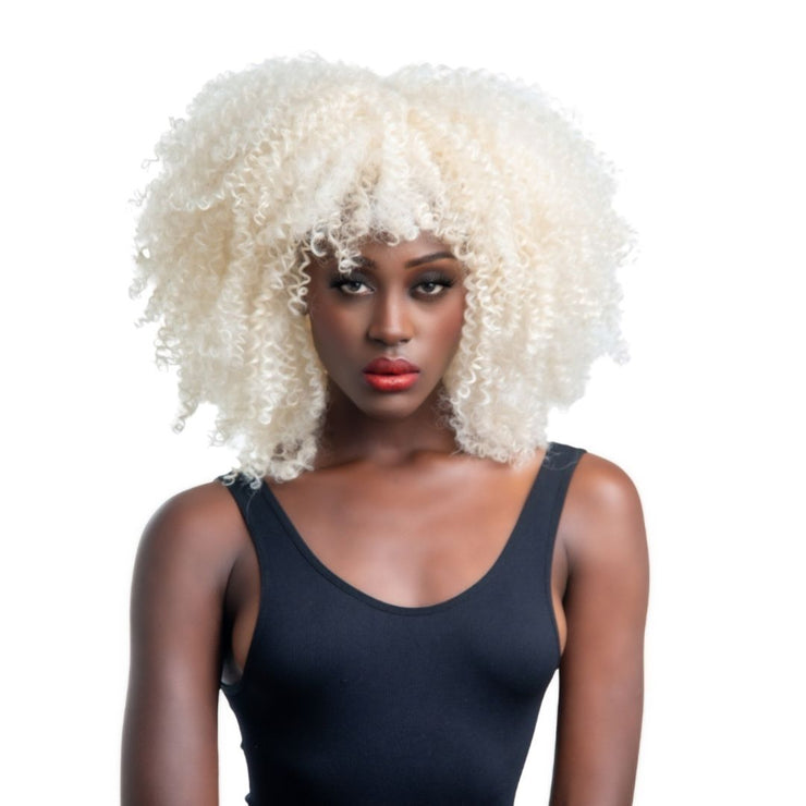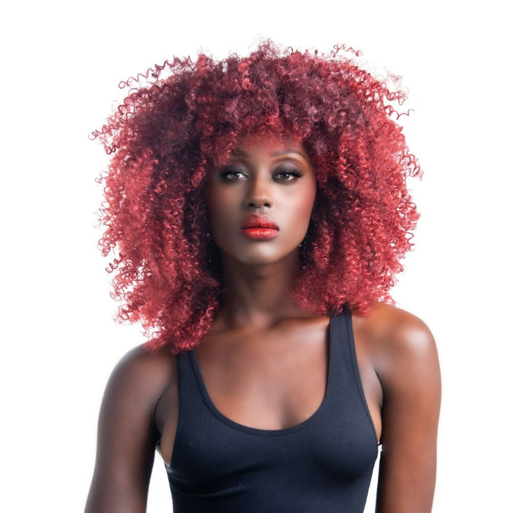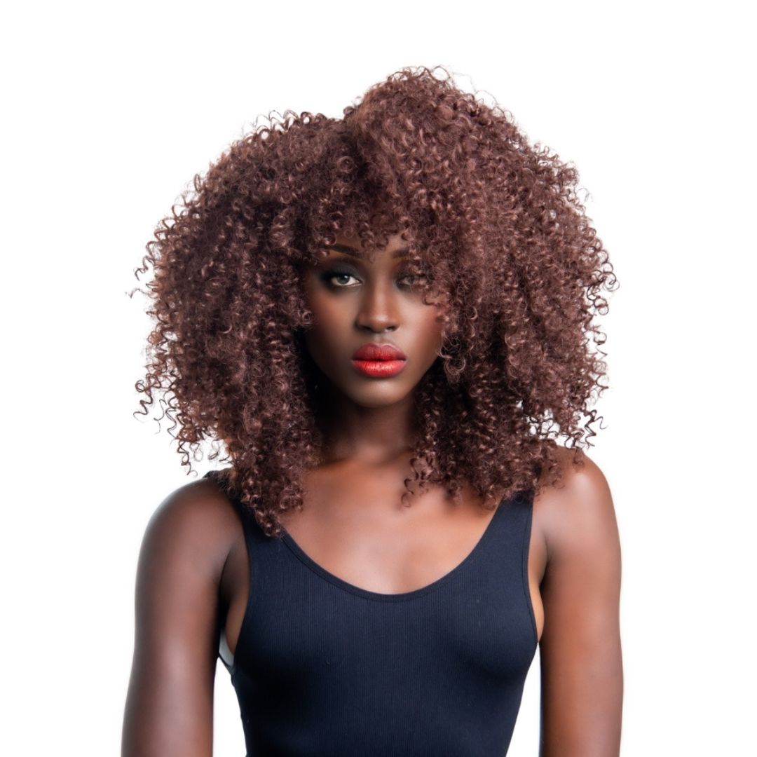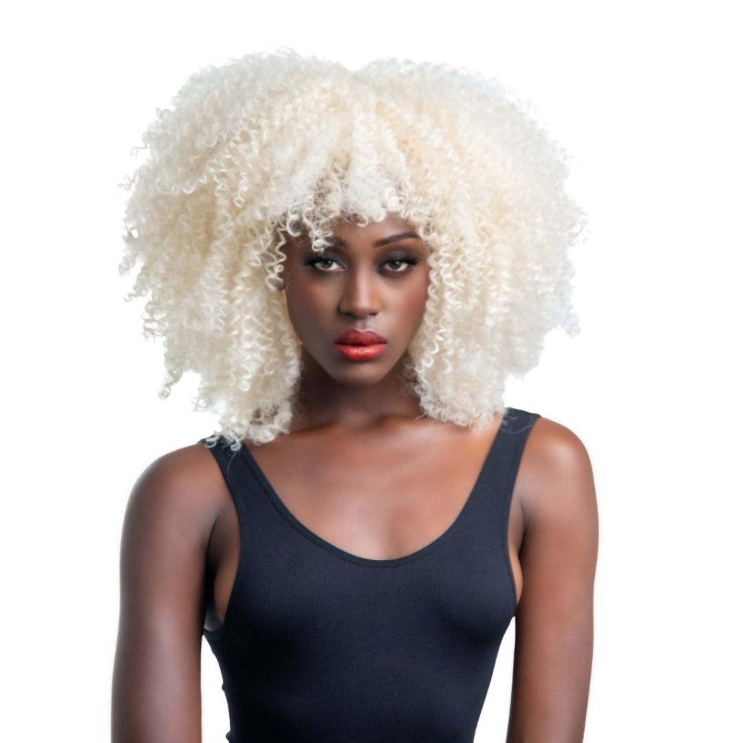 Madame Kinky features a bounty of whimsical, bodacious natural curls that are sexy as hell. She comes in a dozen alluring colors, ranging from Blue Dusk to Burgundy Ombre to Ash Blonde. Everywhere you go, She will steal the show and command adoring fanfare from men and women alike (whatever floats your boat!). This Kinky Curly Afro wig is perfectly shaped right outside the box, feeling super light on your head-- she does not feel wiggy. She is a blend of Human and Kanekalon fibers available in a variety of colors. She will last about 1 year or longer with proper care, and she actually looks nicer with age. She is perfect for everyday wear or in between looks. Madame Kinky is the NEWEST addition to MUSHIYA Beauty Wigs Collection.
